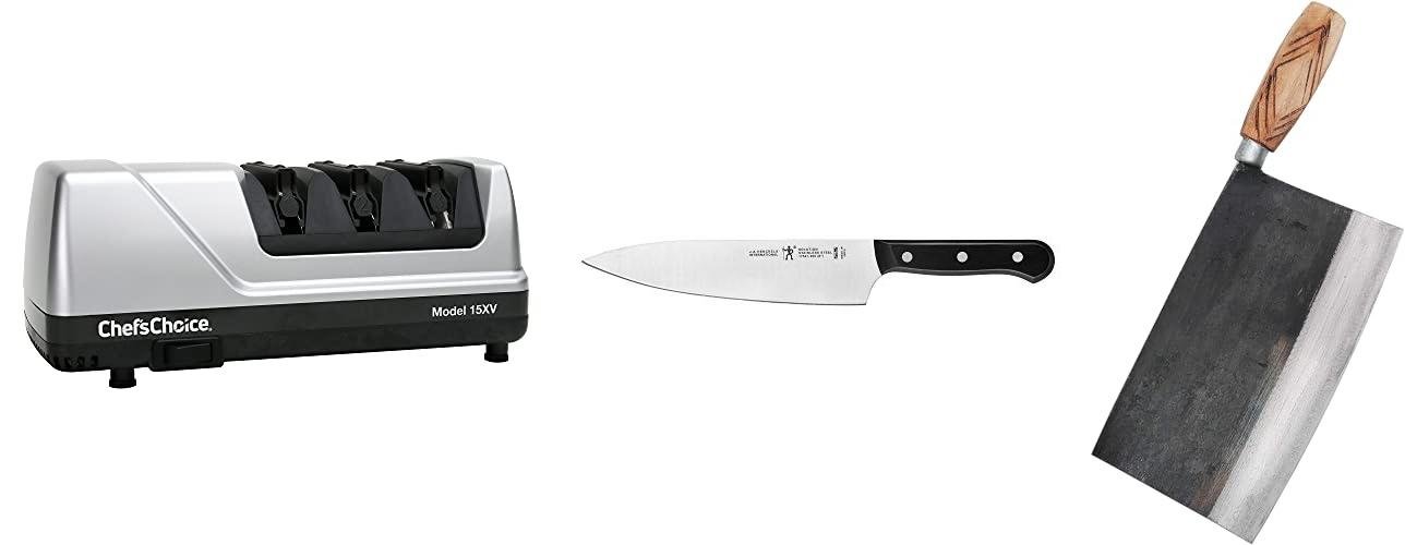 Chef’sChoice 15XV Professional Electric Knife Sharpener With 100-Percent Diamond Abrasives And Precision Angle Guides For Straight Edge and Serrated Knives, 3-Stage, Black