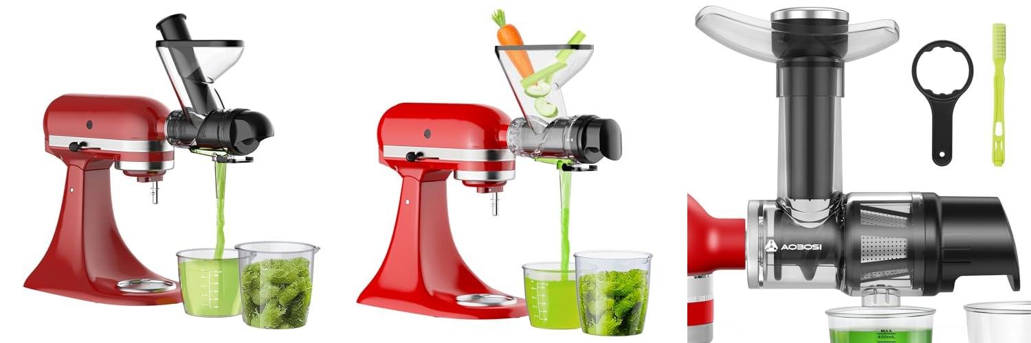 Transform your KitchenAid stand mixer into a powerful juicing machine with the AAOBOSI Masticating Juicer Attachment! This clever accessory lets you ditch the idea of buying a whole new juicer and instead, gives your existing mixer the gift of healthy, fresh juice. It’s a fantastic way to add more goodness to your day without adding clutter to your kitchen.