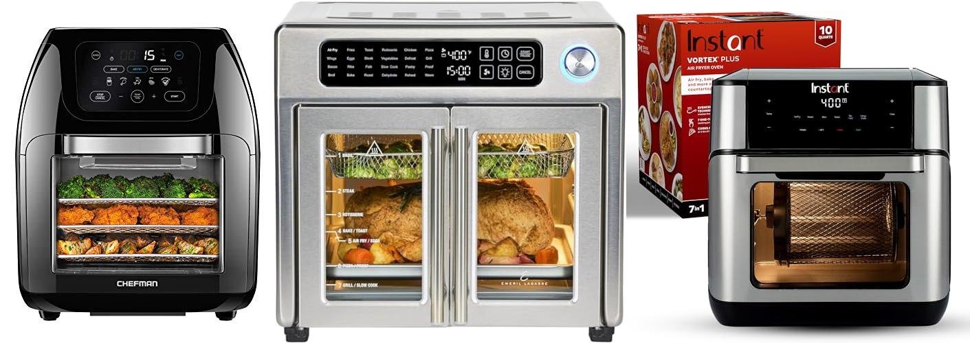 A: They vary in size, but most are comparable to a large toaster oven. Measure your counter space before buying.