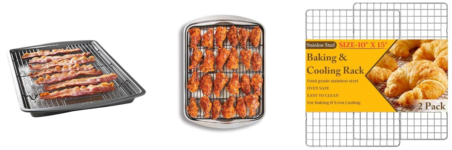 - Achieve Super Crispy Foods: This set is fantastic for making bacon, chicken wings, fries, and chips incredibly crispy. The raised rack lets air circulate around your food, so it cooks evenly and gets that perfect crunch.