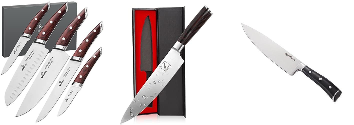 3. Amazon Basics Classic 8-inch Full Tang Stainless Steel Chef’s Knife with Three Rivets