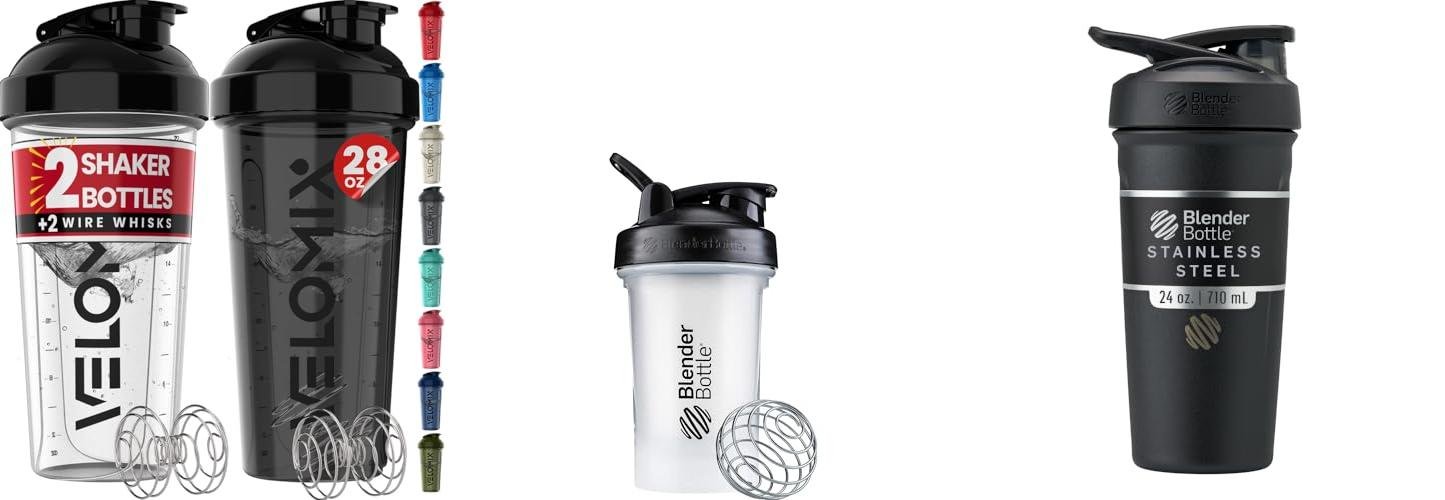 1. VELOMIX -2 Pack- 28 oz Protein Shaker Bottles for Protein Mixes – 2x Wire Whisk
