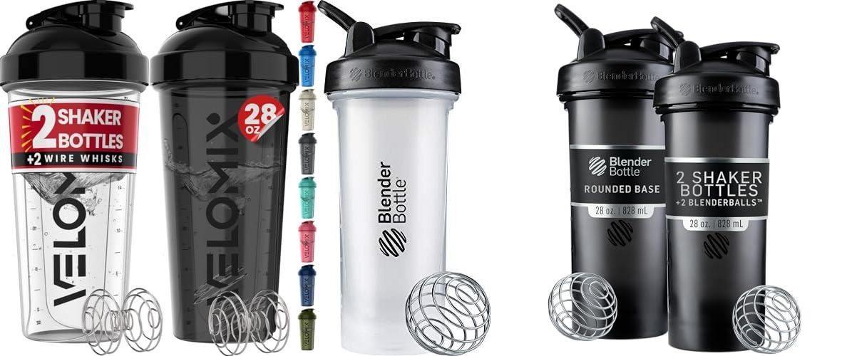 1. VELOMIX -2 Pack- 28 oz Protein Shaker Bottles for Protein Mixes – 2x Wire Whisk
