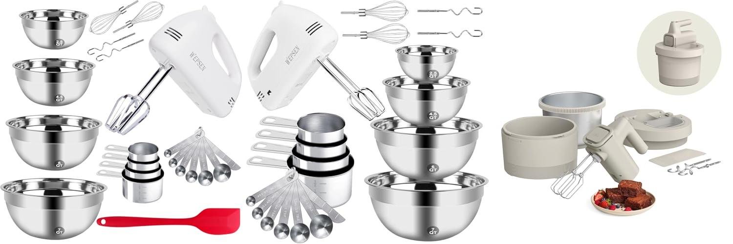 2. WEPSEN Hand Mixer Electric Mixing Bowls Set