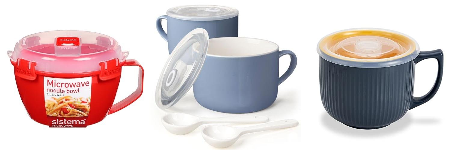5. Unbreakable Microwave Soup Mugs with Lids and Handles