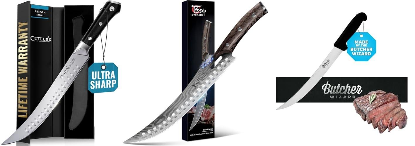 The Cutluxe Butcher Knife Set – Artisan Series is a top-notch collection designed for serious meat lovers and BBQ pitmasters. This set brings together three essential knives to tackle any meat-cutting task, from breaking down large cuts to preparing perfect brisket slices.