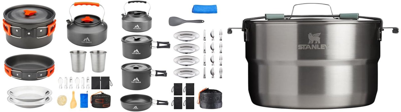 - Completeness: Some sets are just pots. Others include plates, cups, utensils, and even a carrying bag. Think about what you need to cook and eat.