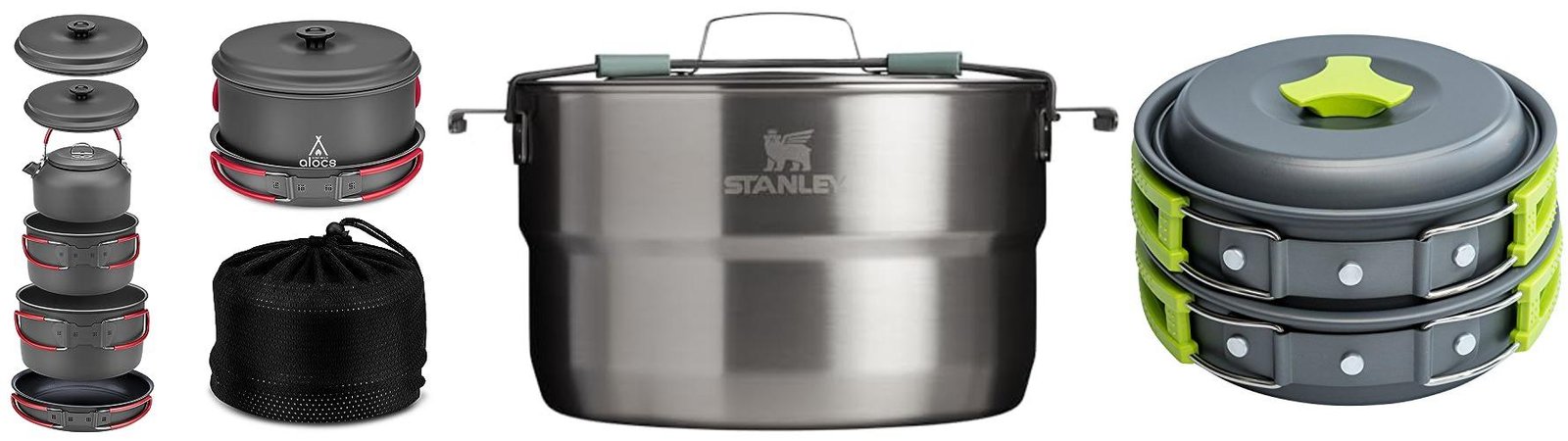 - Lightweight and compact are key. Titanium or aluminum pots and pans are usually the best choices.