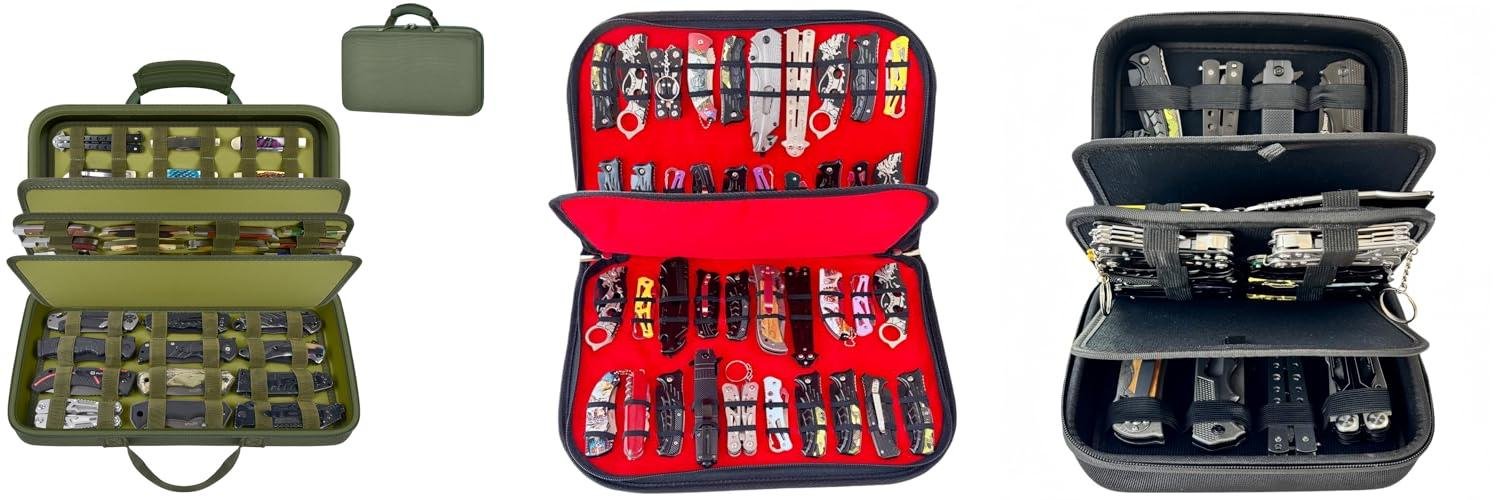 1. casmilee Large Knife Display Case – 88 Slot Folding Knife Storage Bag for Pocket Knife Collection