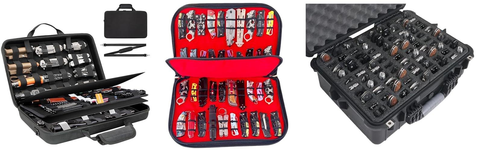 - It holds a lot! You can fit up to 90 folding knives, Swiss Army knives, or butterfly knives.