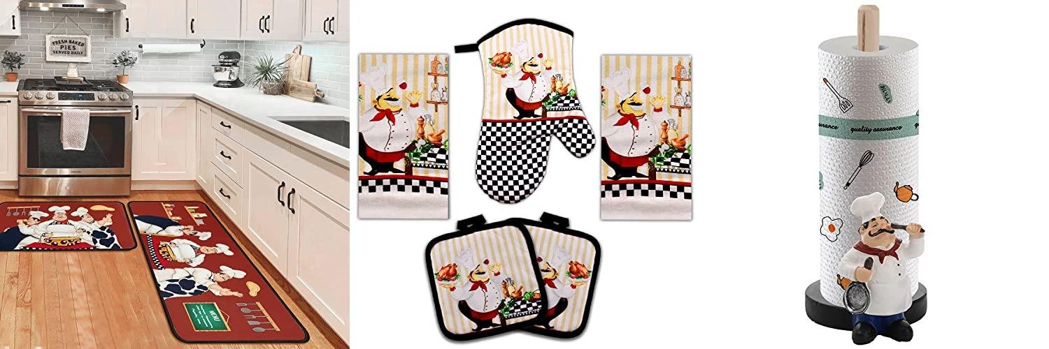 - The adorable chubby uniformed chef design really brightens up the kitchen.