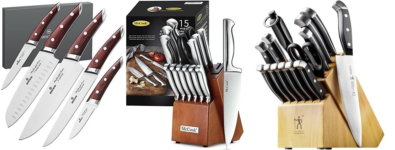 You’ll hold your knives a lot. The handles should feel good in your hand. They shouldn’t be slippery. Wood, plastic, or metal are common handle materials. Look for a handle that fits your grip.