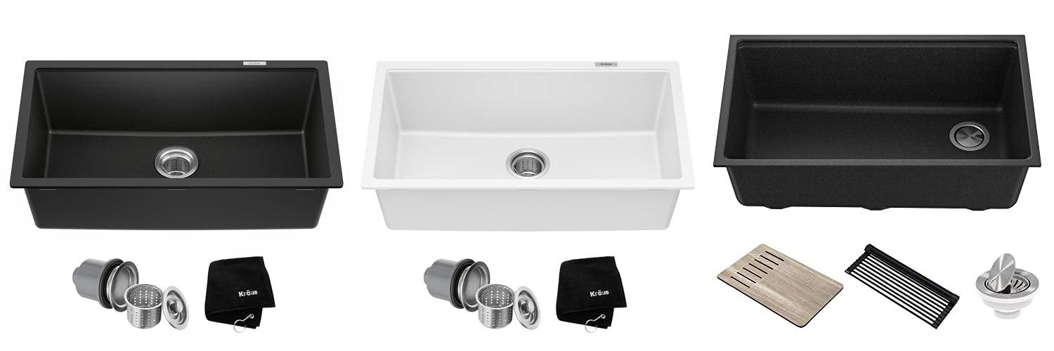 1. KRAUS Quarza 31-inch Undermount Single Bowl Granite Kitchen Sink in Black Onyx