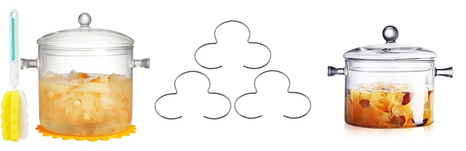 1. Clear Glass Cooking Pot With Lid And Brush And Silicone Hot Pads On Stove – 3L(101oz) Borosilicate Glass Simmer Pot And Pan With Cover – Glass Cookware Stovetop Pot Set For Pasta