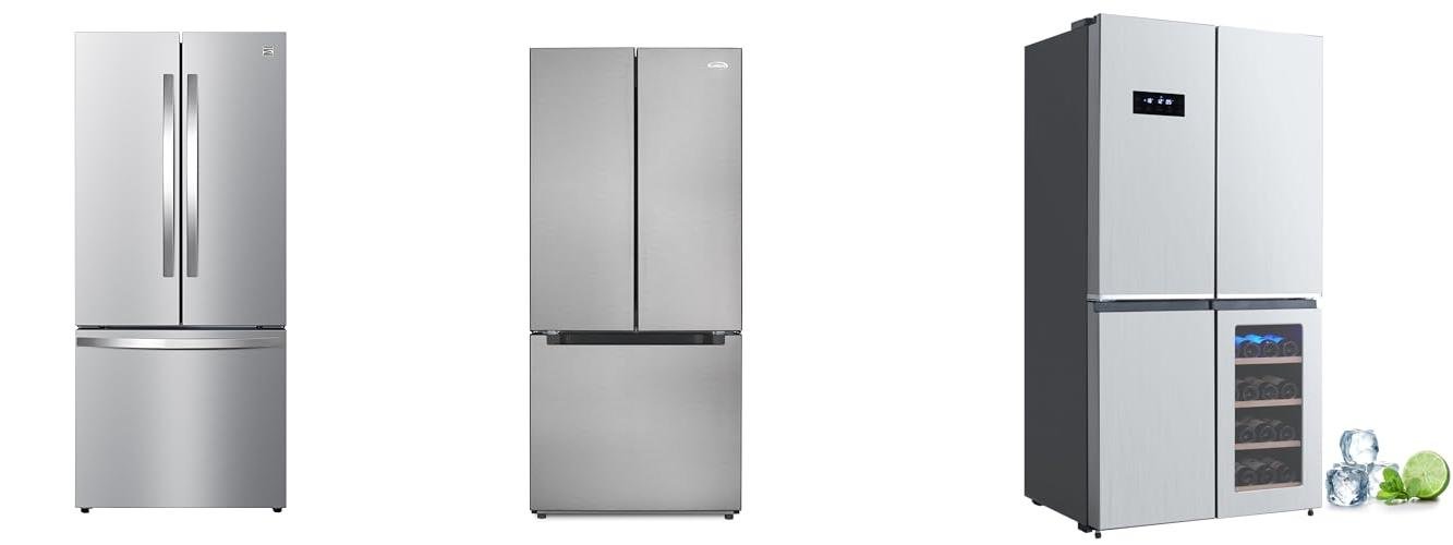 2. KoolMore KM-RERFDSS-18C 30-Inch and 18.5 cu. ft. Counter Depth French Refrigerator with Three Doors and Deep Freezer in Stainless-Steel