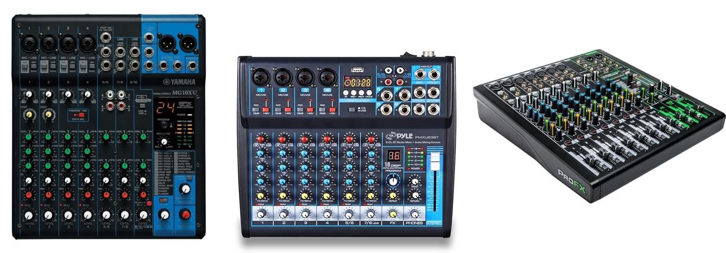 A: Think about how many things you need to plug in at once. If you only use one or two microphones, a small mixer is fine. If you have a full band, you’ll need a bigger one.