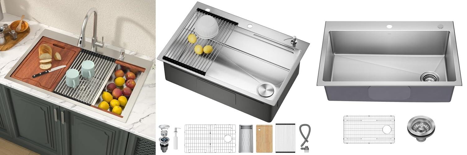 1. Lordear 33 Inch Drop In Kitchen Sink Workstation All In One SUS304 16 Gauge Stainless Steel 33×22 Drop In Sinks Single Bowl Handmade Above the Counter