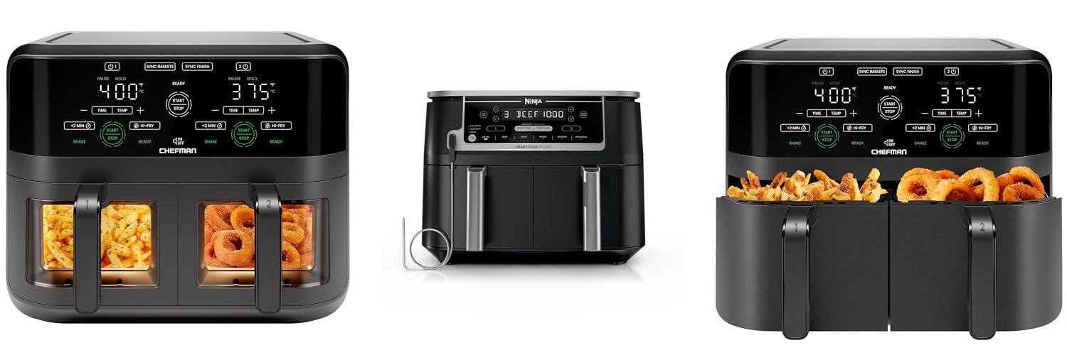 1. CHEFMAN 6 Quart Dual Basket Air Fryer Oven with Easy View Windows