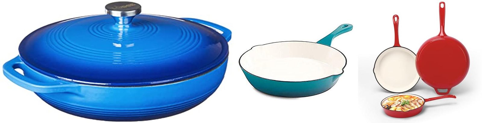 - Enamel Color: Enameled skillets come in fun colors! Choose a color you like. The color doesn’t affect how it cooks.