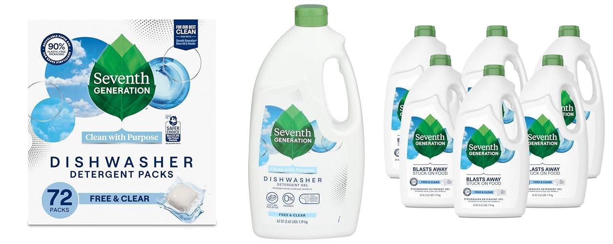 1. Seventh Generation Dishwasher Detergent Packs for sparkling dishes Free & Clear Dishwasher Tabs (72 Count)