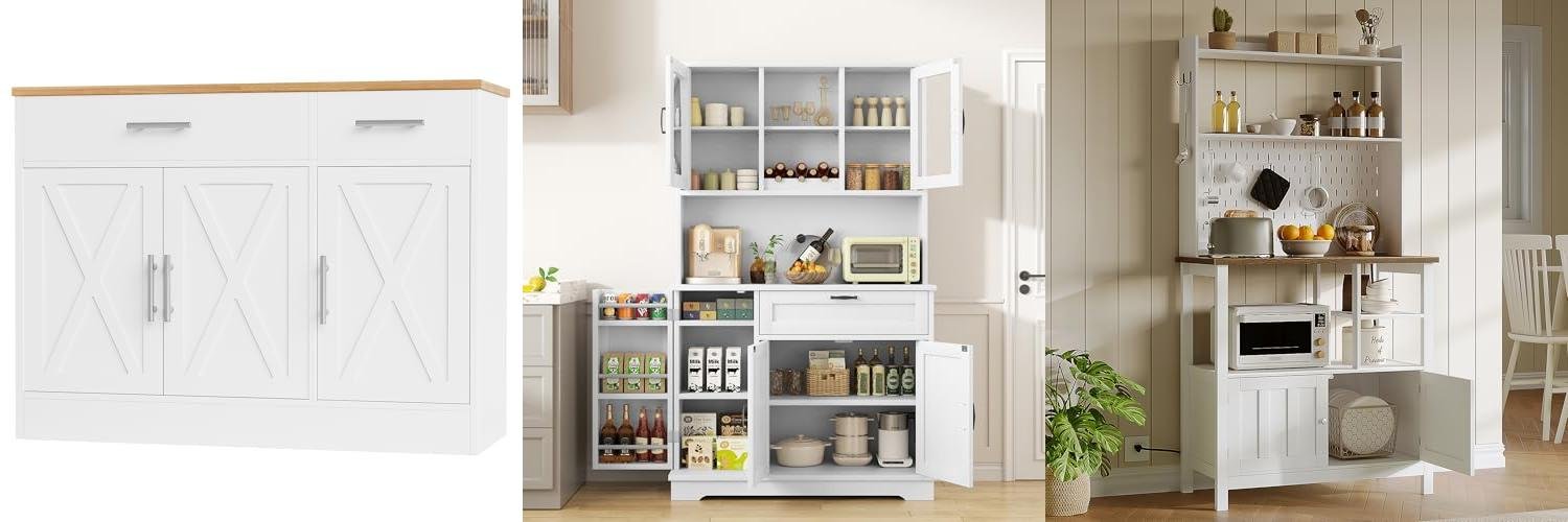 This pantry cabinet is a fantastic choice for anyone needing more storage with a touch of farmhouse charm. Its built-in charging station is a very convenient feature.