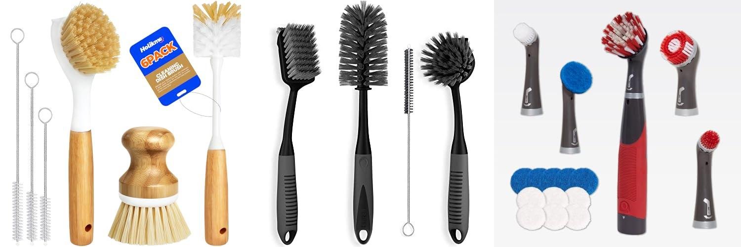- Extra Features: The dish brush has extra bristles for corners and the scrub brush has a scraper.