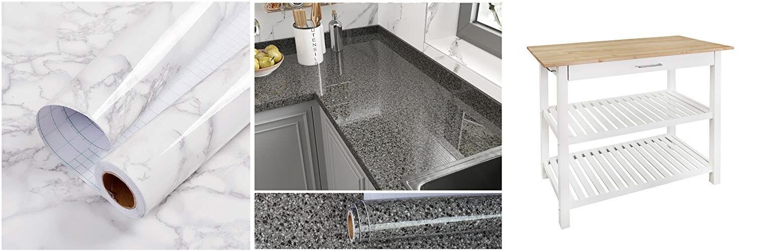 1. practicalWs Marble Paper Granite Gray/White Roll Kitchen Countertop Cabinet Furniture is Renovated Thick PVC Easy to Remove Without Leaving Glue Upgrade 17.71″ x 196.8″