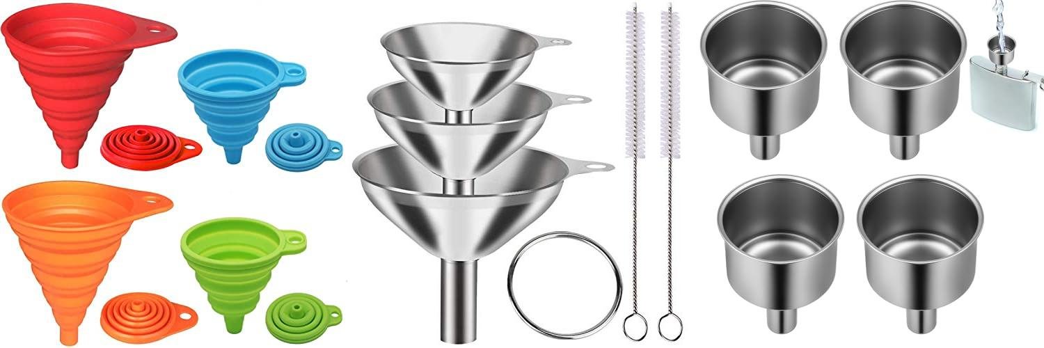 - The set includes two different sizes: a smaller 4 oz/120 mL funnel and a larger 16 oz/475 mL funnel.