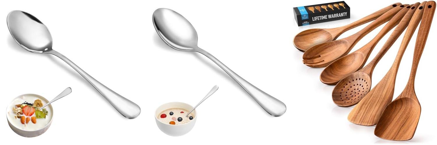 • Stainless Steel: Stainless steel spoons are strong and durable. They are easy to clean and don’t stain. They can scratch some cookware.