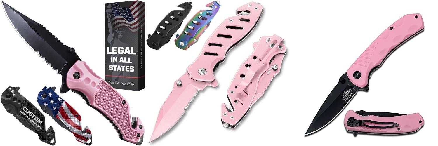 The GOOD WORKER Legal Pink Pocket Knife for Women Self Defense is a stylish and functional tool designed for everyday use and personal safety. This knife features a cool pink design and a 2.95-inch serrated folding blade, making it a versatile companion for women. It’s legal to carry in all U.S. states, offering peace of mind and practical utility.