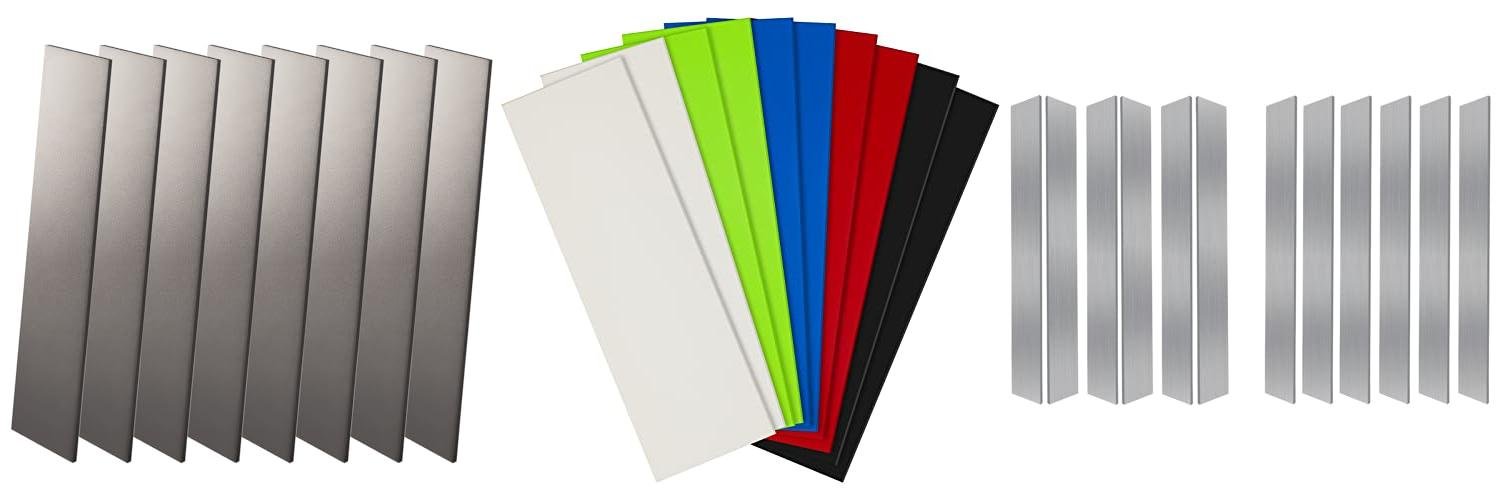 - Each bar is the same size, 12″ x 1.5″ x 0.12″.