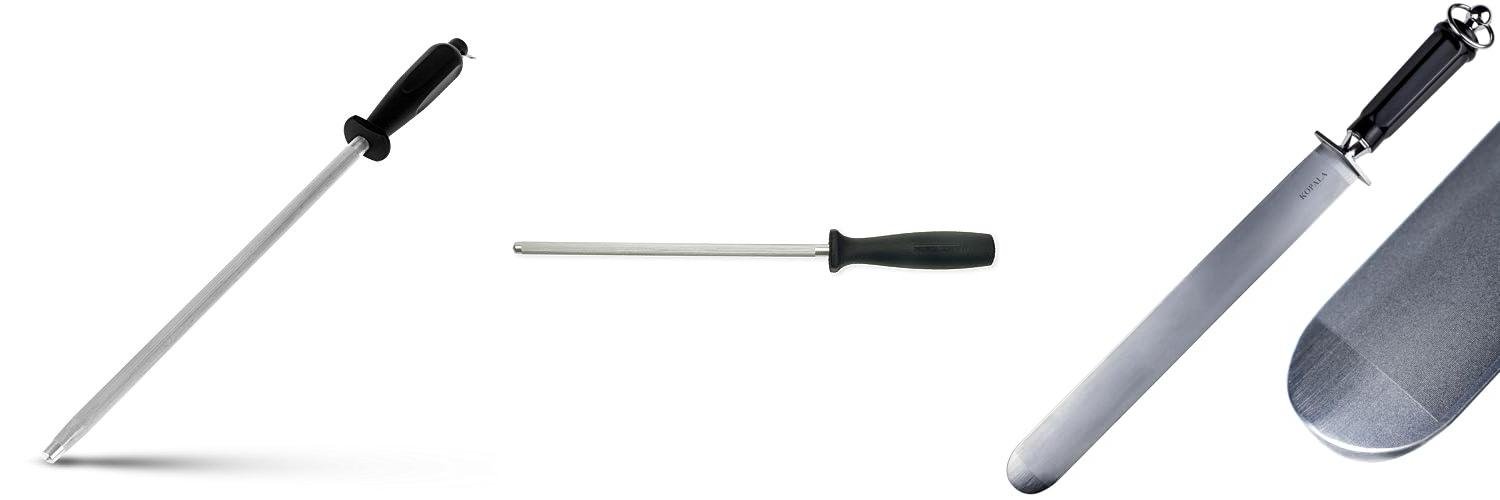 - The steel rod is made of strong high-carbon steel and is coated with nickel-chrome. This coating protects the knife’s edge.