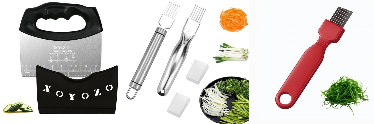 - VERSATILE DESIGN: You get two professional-grade stainless steel slicers. They have many sharp blades. These blades cut green onions, herbs, and scallions perfectly.