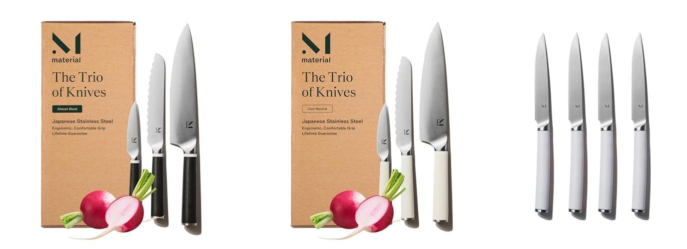 Get ready to transform your kitchen experience with the Material Knife Trio. This set is more than just knives; it’s a tool that brings Japanese craftsmanship to your home. Designed for serious cooks and beginners alike, these knives make chopping and slicing feel effortless. Plus, they’re so good they were even picked as one of Oprah’s Favorite Things in 2021!