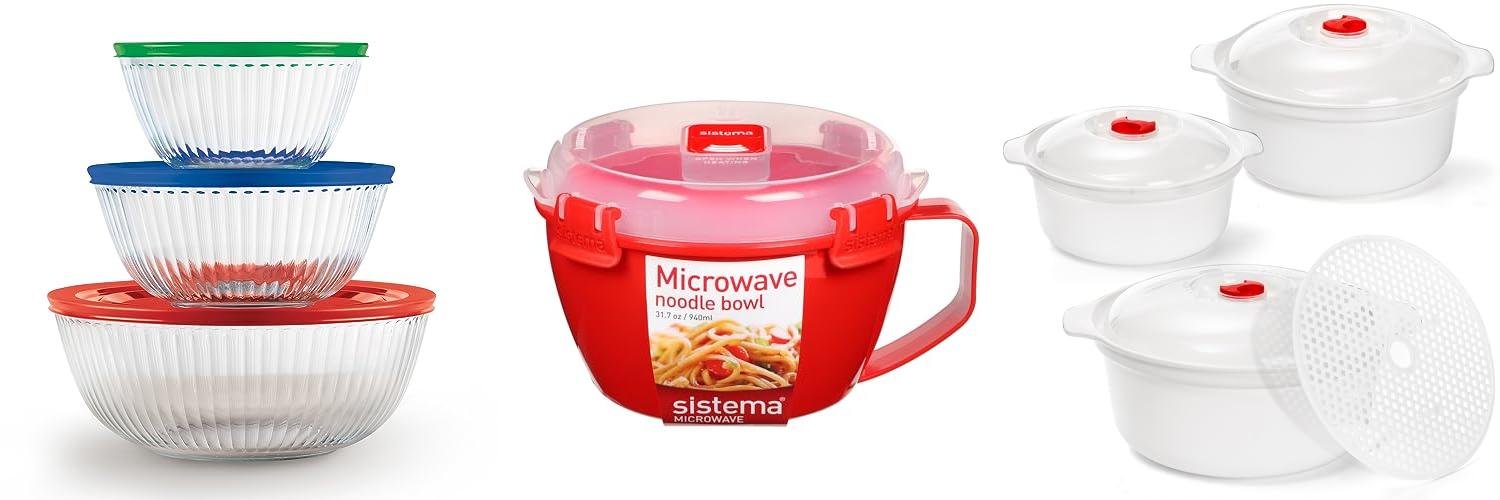 - These bowls are super useful! You can use them for cooking in the microwave, storing leftovers, or even as mixing bowls. The three sizes give you flexibility for different meals and needs.