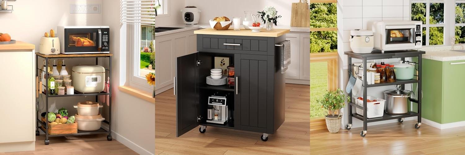 These carts are a lifesaver in apartments or small homes where counter space is limited. They add storage and a place for your microwave without taking up much room.
