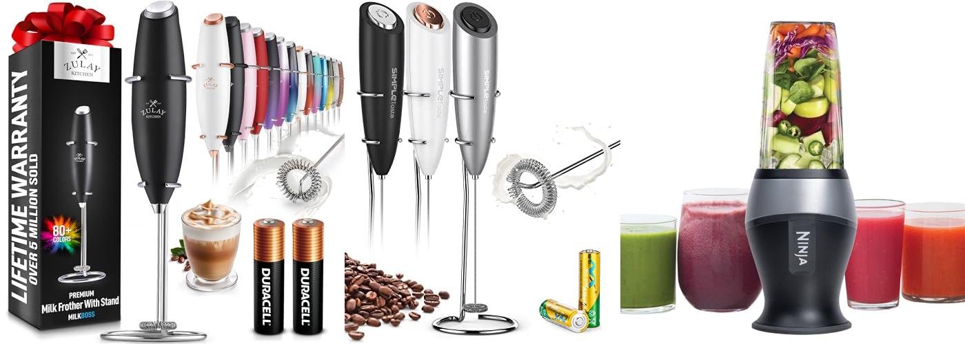 1. Zulay Kitchen Powerful Milk Frother Wand With 2 Duracell Batteries – Ultra Fast Handheld Drink Mixer – Electric Whisk Foam Maker for Coffee