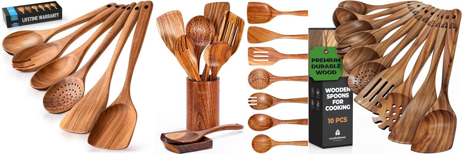 This comprehensive wooden utensil set is a wonderful addition to any kitchen. It offers both functionality and style while being kind to your cookware and the planet.
