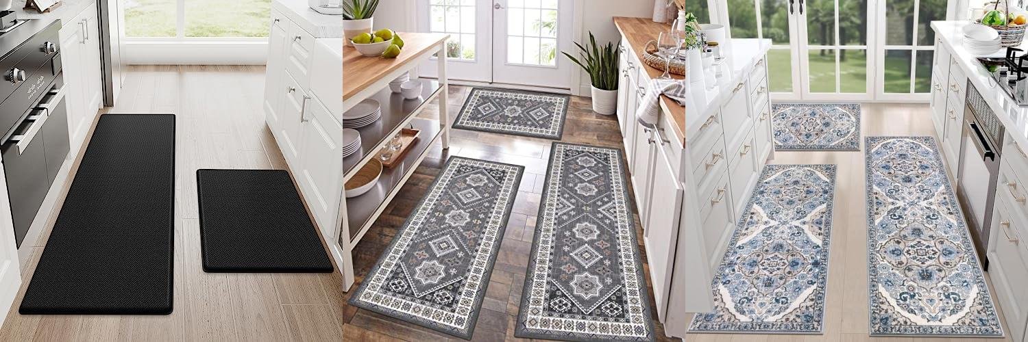 A: This depends on your kitchen size and where you want the rug. Runners are good for long spaces. Smaller mats are good for specific spots like in front of the sink.
