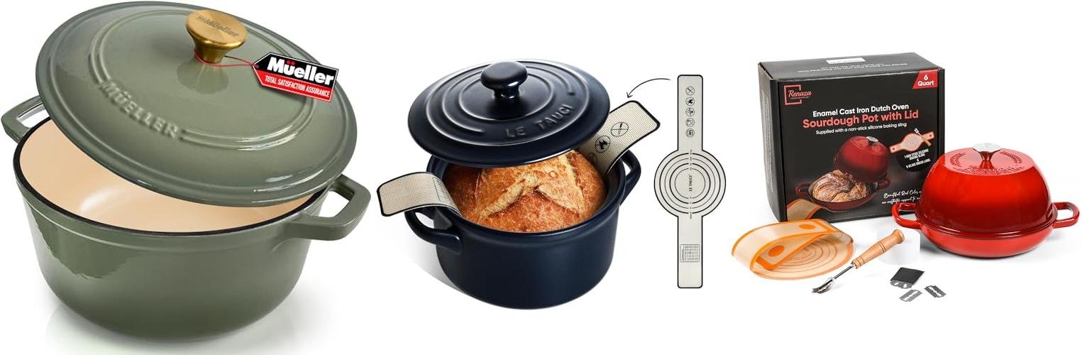 1. MÜELLERHOME 6 Quart Enameled Cast Iron Dutch Oven For Sourdough Bread Baking
