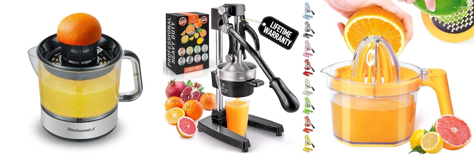 A: There are manual juicers where you twist the orange, and electric juicers that do the work for you. Electric ones can be reamer-style or lever-style.