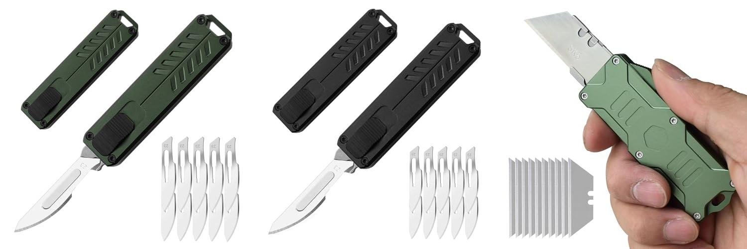 The Caressolove Auto Retractable Utility Knife is a handy tool for all your cutting needs. It’s a safety box cutter that retracts automatically. This pocket knife also works like a scalpel, making it great for detailed jobs. It comes with 10 extra blades, so you’re ready for anything.