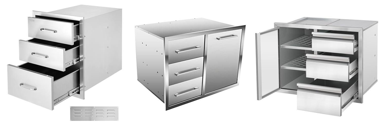 1. VEVOR 18×23 Inch Outdoor Kitchen Stainless Steel Triple Access BBQ Drawers with Chrome Handle