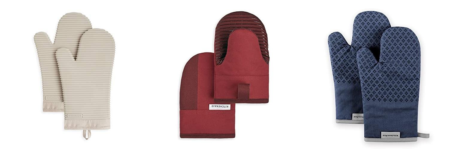 1. KitchenAid Ribbed Soft Silicone Oven Mitt Set