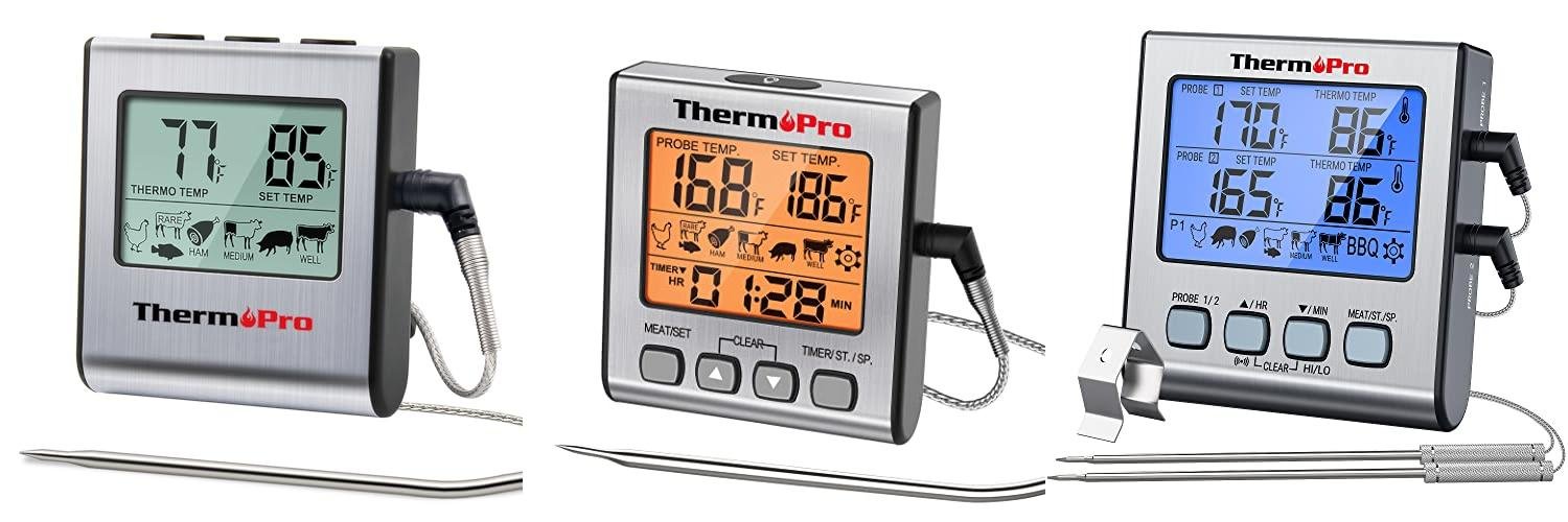 1. ThermoPro TP16 Large LCD Digital Cooking Food Meat Thermometer for Smoker Oven Kitchen BBQ Grill Thermometer Clock Timer with Stainless Steel Temperature Probe