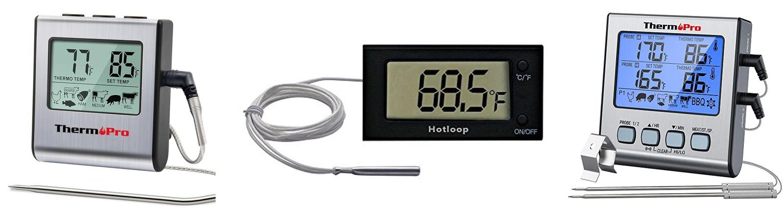 1. ThermoPro TP16 Large LCD Digital Cooking Food Meat Thermometer for Smoker Oven Kitchen BBQ Grill Thermometer Clock Timer with Stainless Steel Temperature Probe