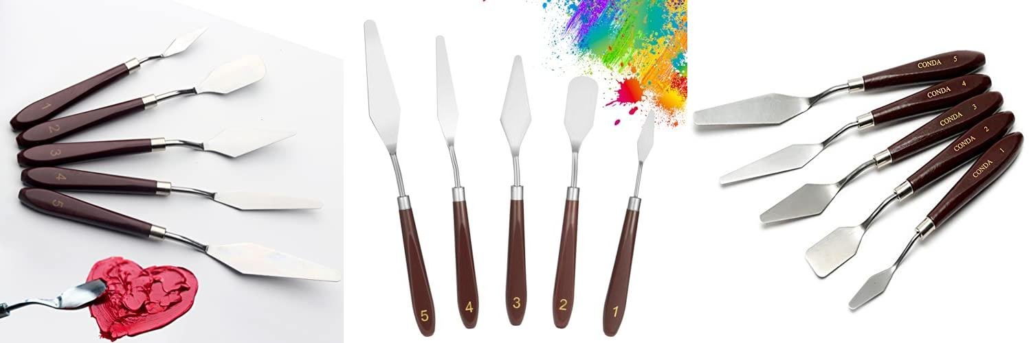 3. CONDA Palette Knife Painting Stainless Steel Spatula Palette Knife Oil Paint Metal Knives Wood Handle (Red 5 Piece)