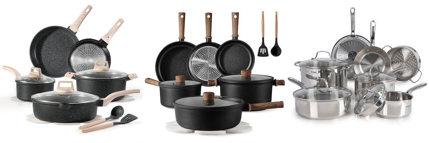 - Set Size and Variety: Think about what you cook most often. Do you need a small saucepan for sauces, a large pot for soups, or a frying pan for searing? Choose a set that has the sizes and types of pans you’ll use.