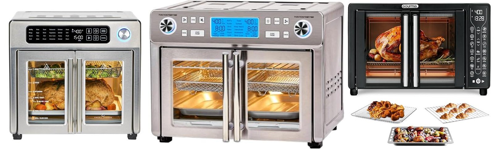 3. Gourmia Toaster Oven Air Fryer Combo 17 cooking presets 1700W french door digital air fryer oven 24L capacity accessories