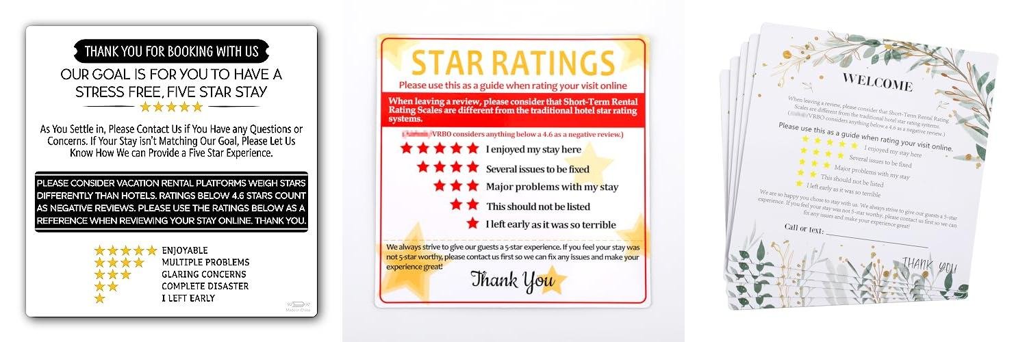 This 5-piece set of “5 Star Rating Explanation” magnets is a helpful tool for anyone running short-term rentals. They clearly explain what each star rating means to guests. This helps guests understand how to leave feedback and can lead to better reviews for your rental property. The magnets are designed to be easily seen and understood.